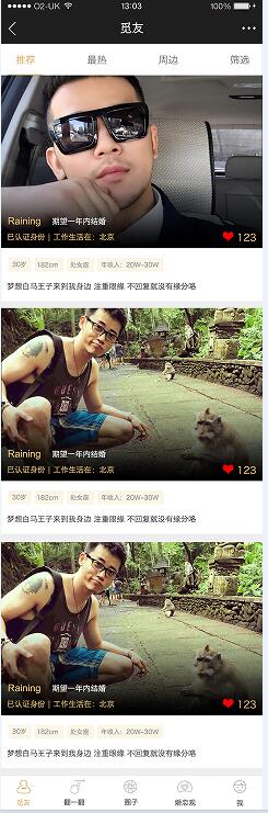 觅友定位于健康、真实、纯净、高品位的真诚觅缘活动,在这里,你可以知道身边有哪些人喜欢你、有哪些丰富多彩的活动正在举办,赶快与您身边的朋友一起报名参加户外活动吧?